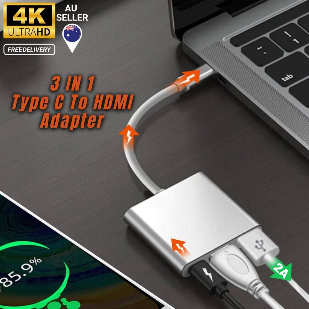 Type C to HDMI Adapter 4K 3 in 1 USB Data Cable HUB HD HDMI Multiport Converter